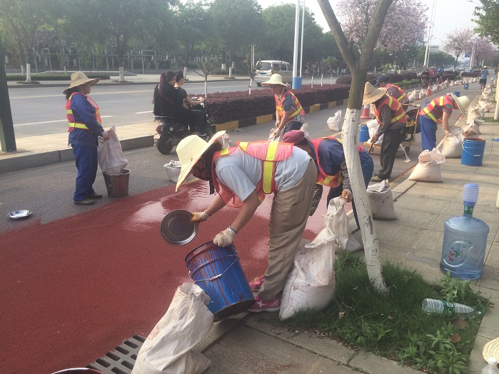 彩色防滑路面適用于城市干道,城市次干道、城市天橋及人行道、社區道路、停車場以及公園人行道等。