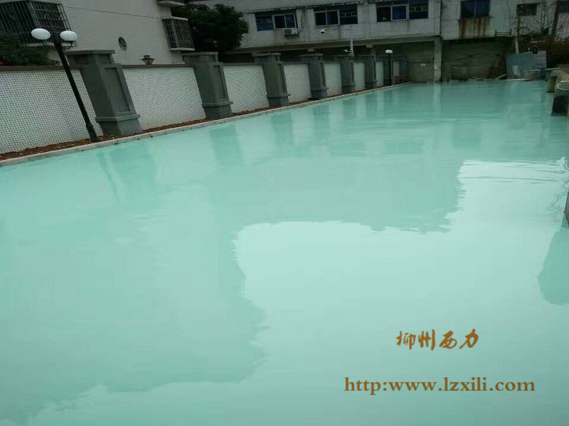 圖為硅PU底涂已經(jīng)施工完成。底涂具有封閉、增強(qiáng)粘結(jié)力、強(qiáng)化混凝土的作用。