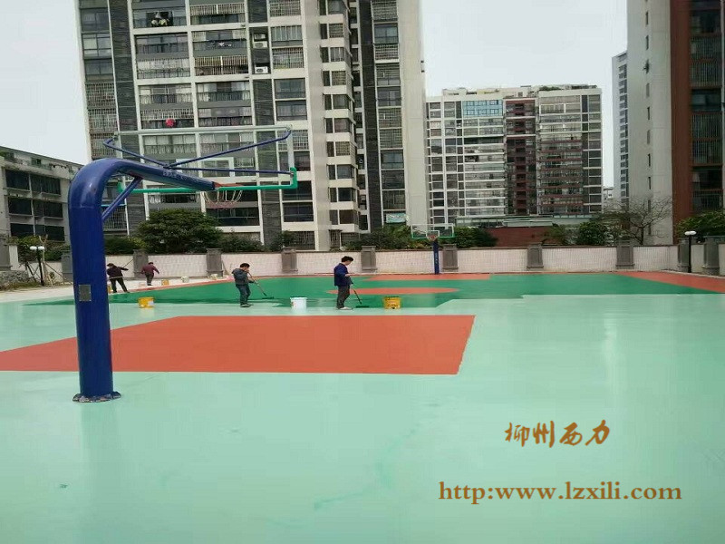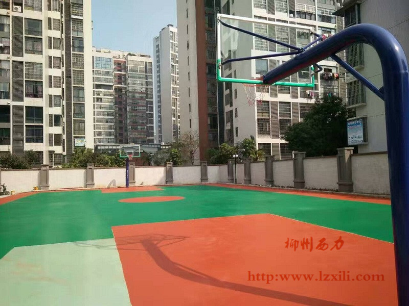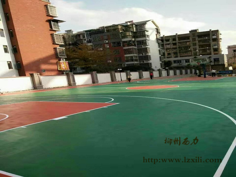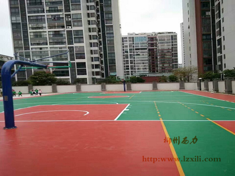 柳州潭中二小硅PU籃球場已經(jīng)施工完畢。
