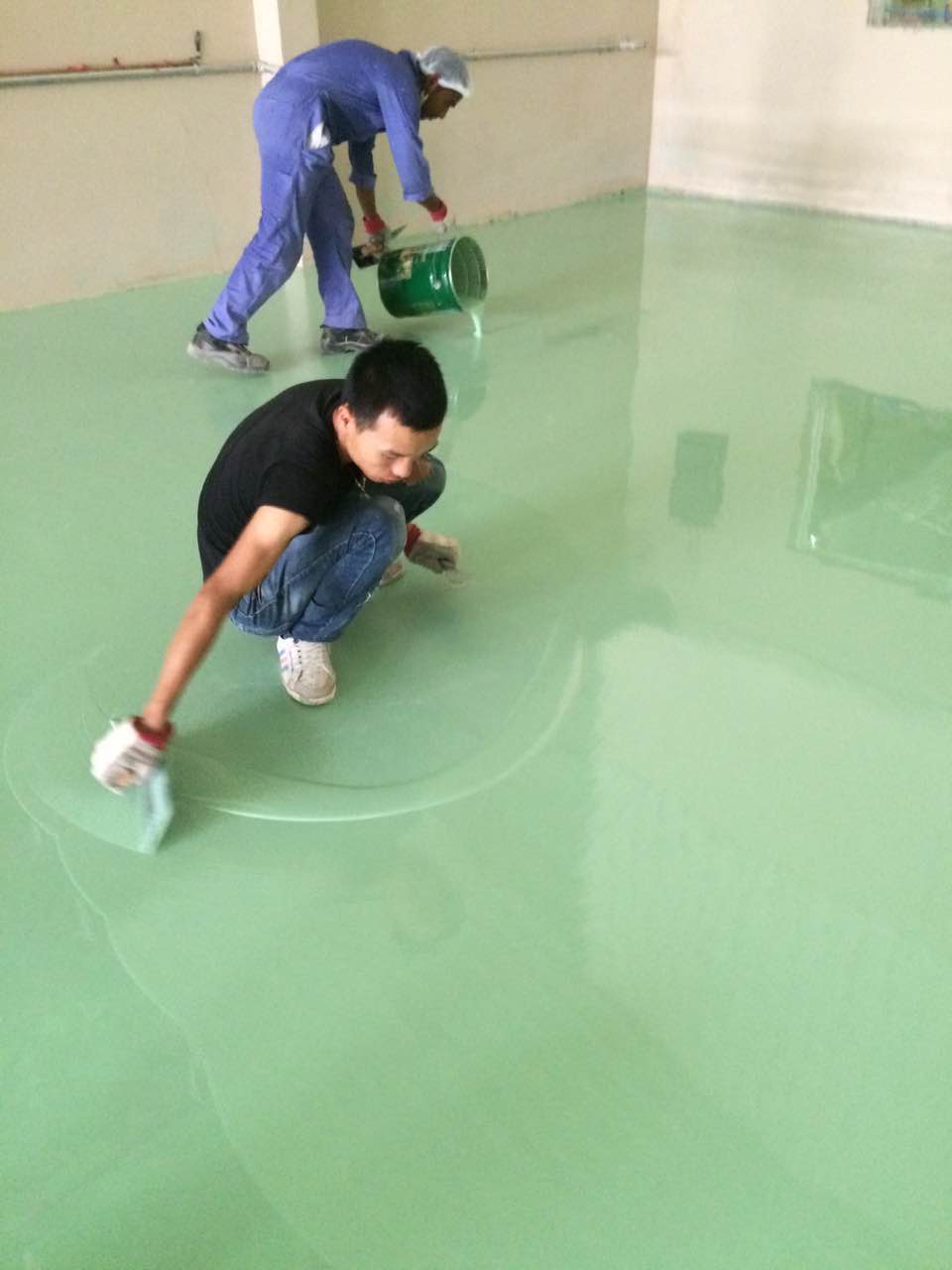 Finished Photo of Epoxy Self-leveling Floor Construction Site Photos of Our Technicians With Amman Workmates