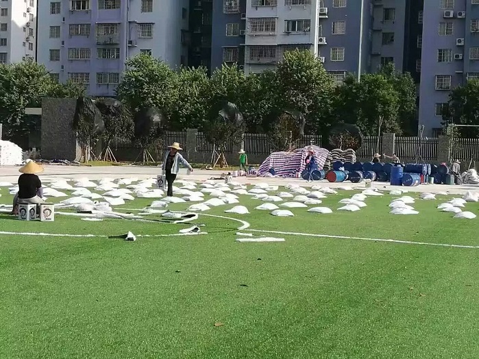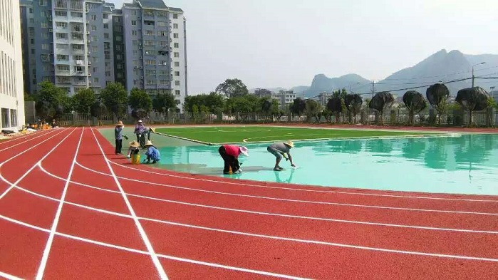 In order to offer students with a new sports field as soon as possible, XILI workers tried to accomplish the construction of whole stadium even if they worked when it is so hot and even when it is on night. During the whole construction process, the materials of plastic track, silicon PU field has no any toxic gass. Our construction has been highly praised by the school.